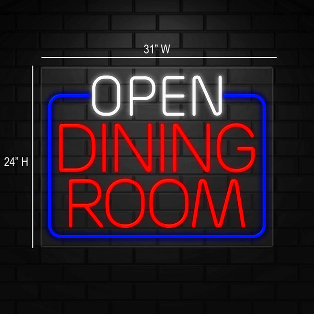Open Dining Room Sign for Retail Displays | LED Flex Neon | 31"W x 24"H x 1"D