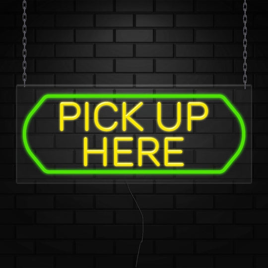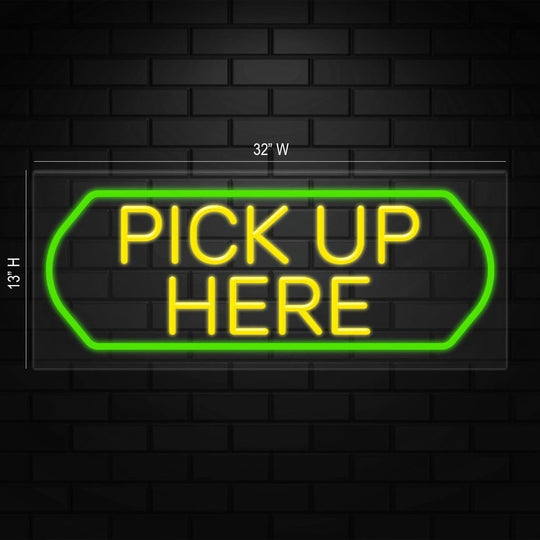 Pick-Up Here Sign for Business Displays | LED Flex Neon | 32"W x 13"H x 1"D