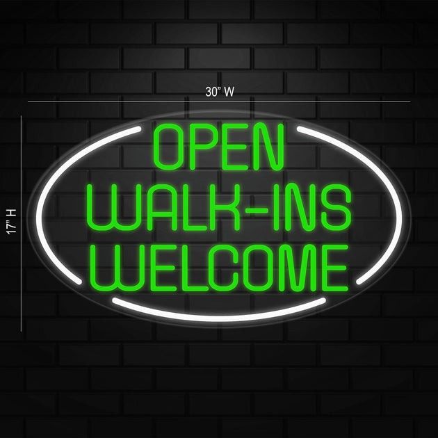 Open Walk Ins Welcome Sign for Business | LED Flex Neon | 30"W x 17"H x 1"D