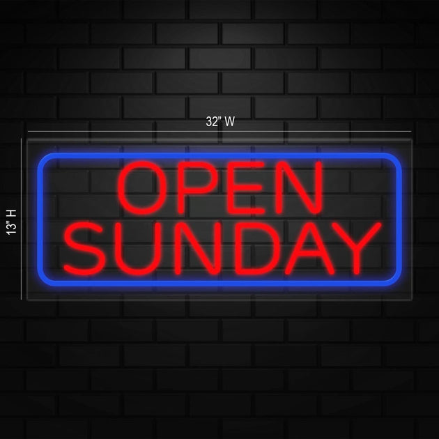 Open Sunday Neon Sign for Retail Displays | LED Flex Neon | 32"W x 13"H x 1"D