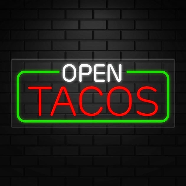Open Tacos Neon Sign for Retail Displays | LED Flex Neon | 32"W x 13"H x 1"D