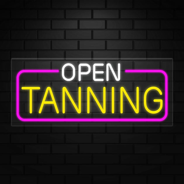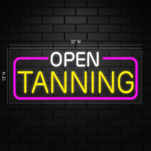 Open Tanning Neon Sign for Retail Displays | LED Flex Neon | 32"W x 13"H x 1"D