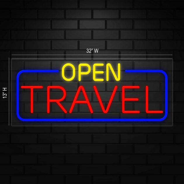 Open Travel Neon Sign for Retail Displays | LED Flex Neon | 32"W x 13"H x 1"D