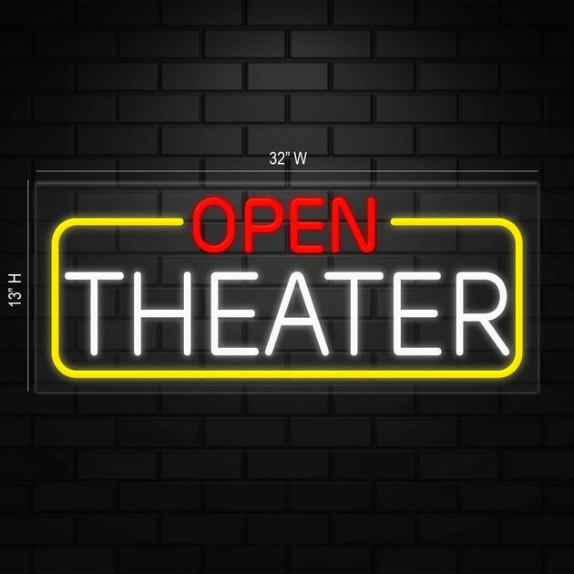 Open Theater Neon Sign for Retail Displays | LED Flex Neon | 32"W x 13"H x 1"D