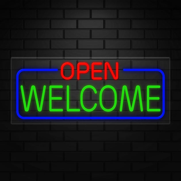Open Welcome Neon Sign for Retail Displays | LED Flex Neon | 32"W x 13"H x 1"D