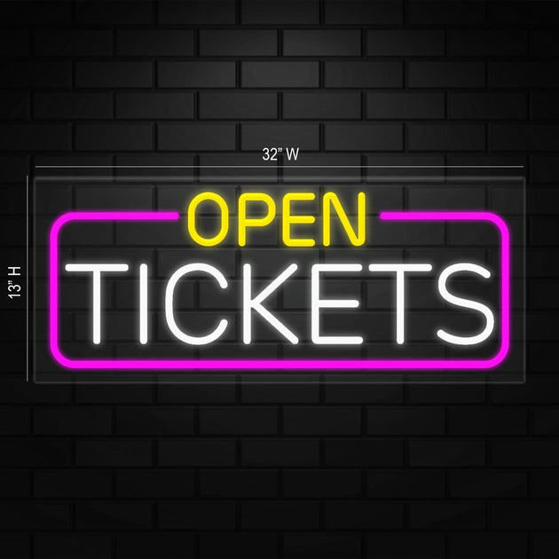 Open Tickets Neon Sign for Retail Displays | LED Flex Neon | 32"W x 13"H x 1"D
