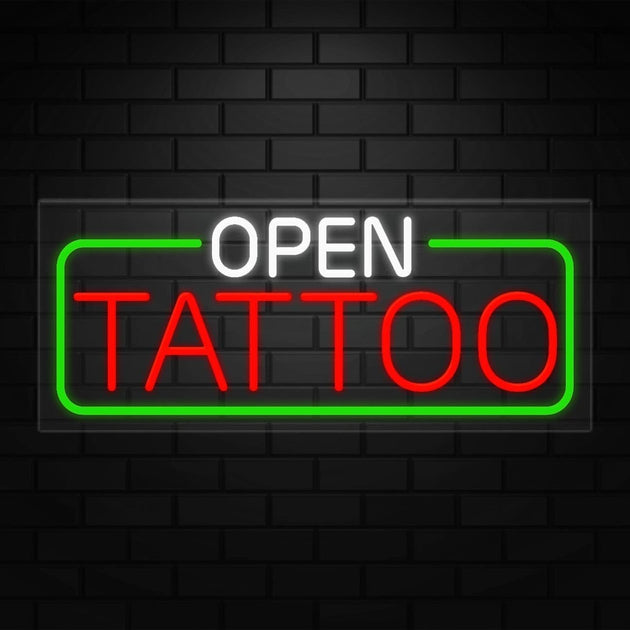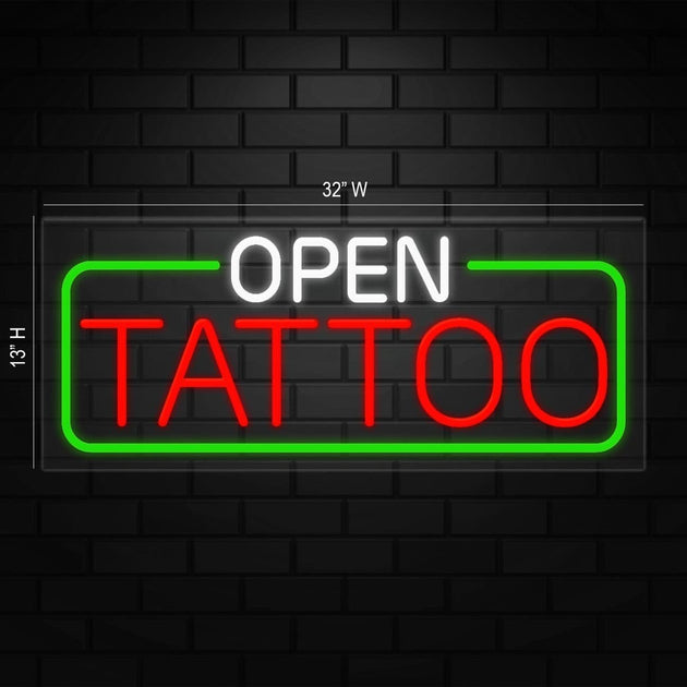Open Tattoo Neon Sign for Retail Displays | LED Flex Neon | 32"W x 13"H x 1"D