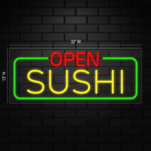 Open Sushi Neon Sign for Retail Displays | LED Flex Neon | 32"W x 13"H x 1"D