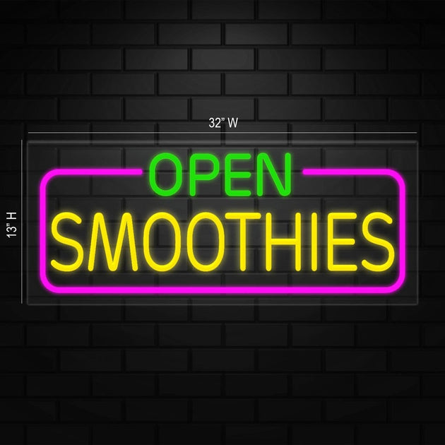 Open Smoothies Neon Sign for Retail Displays | LED Flex Neon | 32"W x 13"H x 1"D