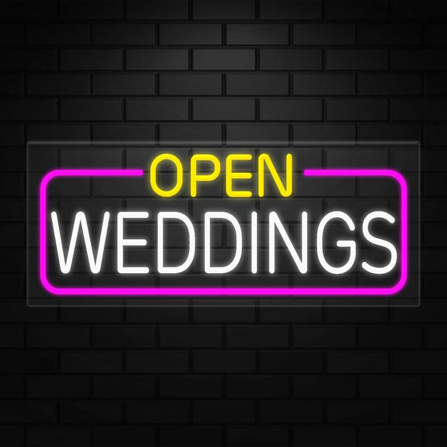 Open Weddings Neon Sign for Retail Displays | LED Flex Neon | 32"W x 13"H x 1"D