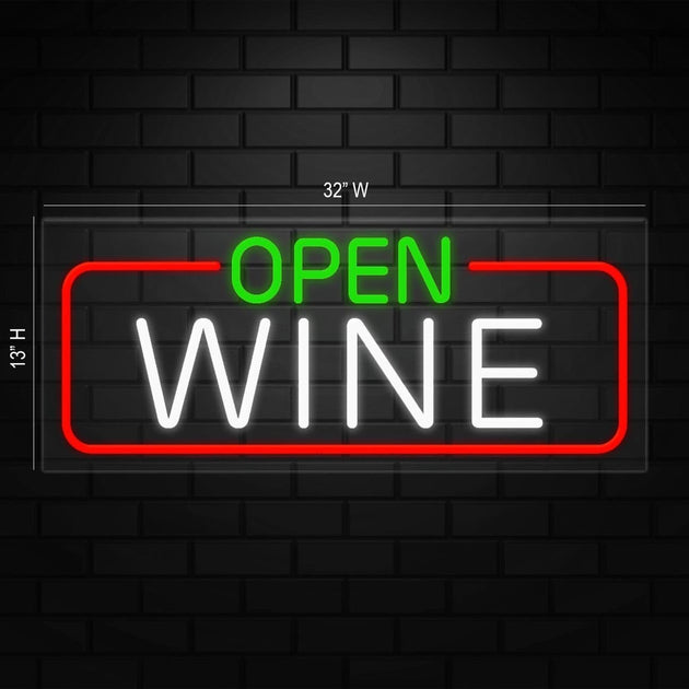 Open Wine Neon Sign for Retail Displays | LED Flex Neon | 32"W x 13"H x 1"D