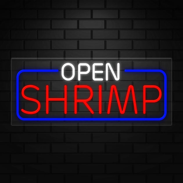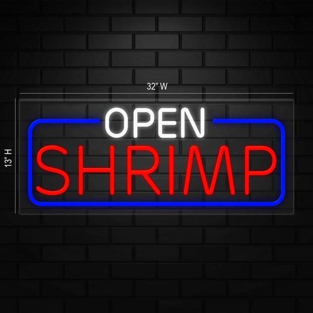 Open Shrimp Neon Sign for Retail Displays | LED Flex Neon | 32"W x 13"H x 1"D