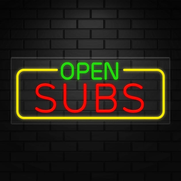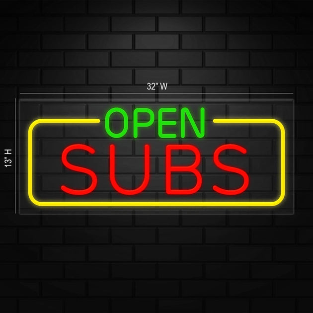 Open Subs Neon Sign for Retail Displays | LED Flex Neon | 32"W x 13"H x 1"D