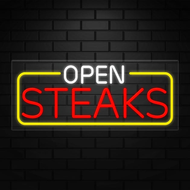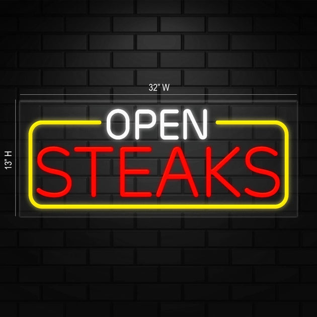 Open Steaks Neon Sign for Retail Displays | LED Flex Neon | 32"W x 13"H x 1"D