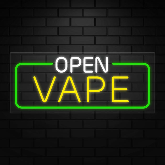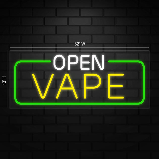 Open Vape Neon Sign for Retail Displays | LED Flex Neon | 32"W x 13"H x 1"D