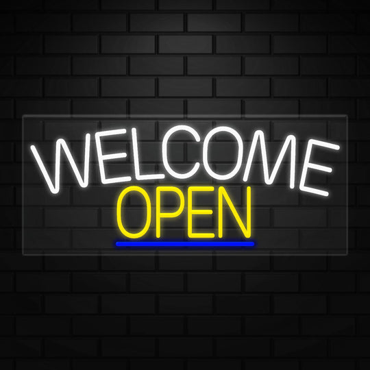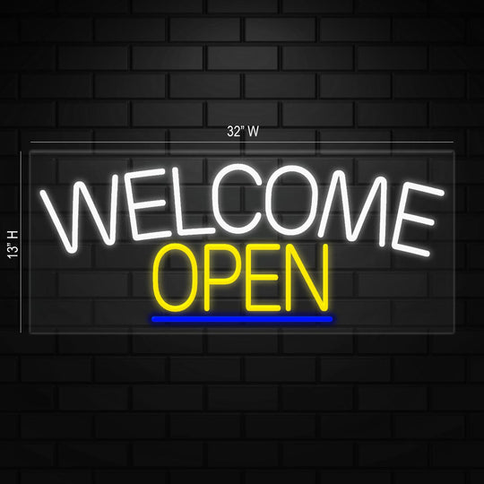 Welcome Open Sign for Business Displays | LED Flex Neon | 36"W x 15"H x 1"D
