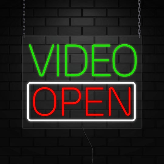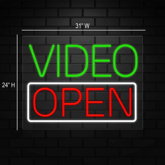 Video Open Sign for Retail Displays | LED Flex Neon | 31"W x 24"H x 1"D