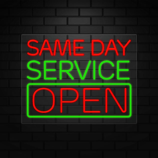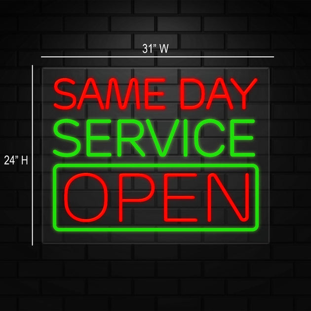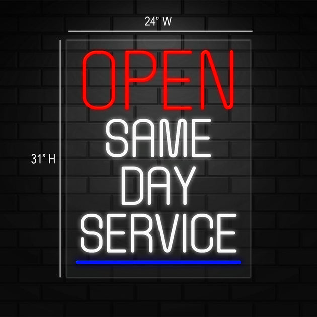 Same Day Service Open Sign for Business | LED Flex Neon | 24"W x 31"H x 1"D