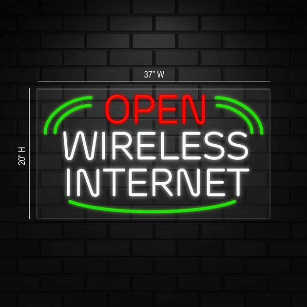 Open Wireless Internet Neon Sign for Retail | LED Flex Neon | 37"W x 20"H x 1"D
