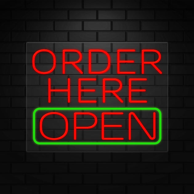 Order Here Open Sign for Retail Displays | LED Flex Neon | 31"W x 24"H x 1"D