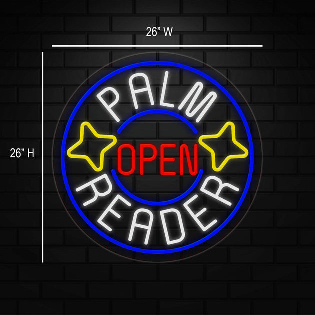 Palm Reader Open Sign for Business Displays | LED Flex Neon | 26"W x 26"H x 1"D