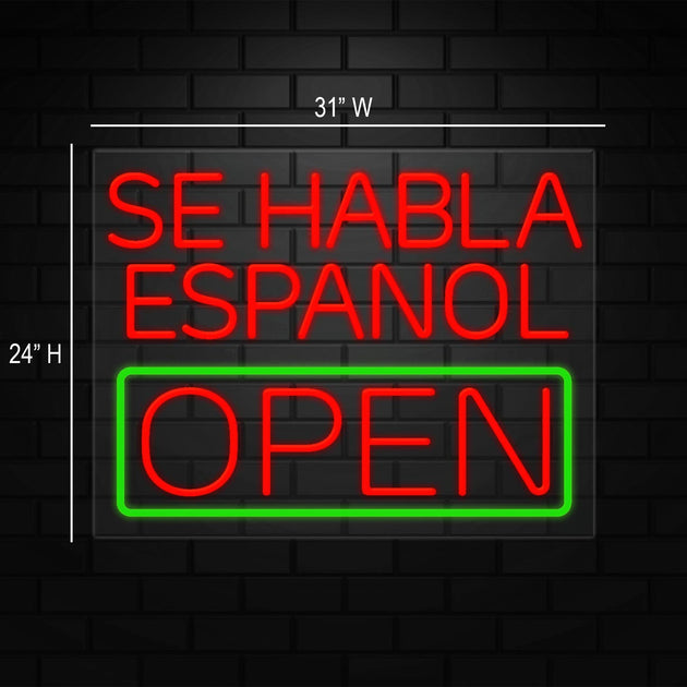 Se Habla Espanol Open Retail Sign Displays | LED Flex Neon | 31"W x 24"H x 1"D