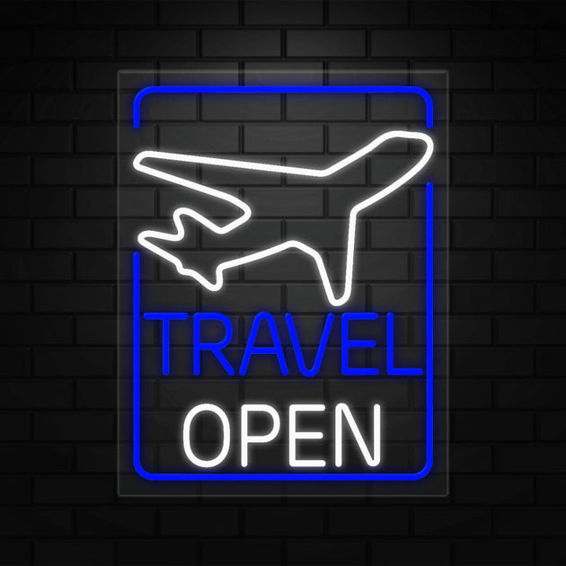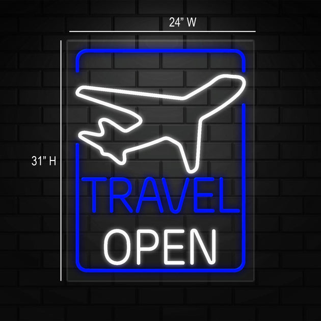 Travel Open Sign for Business Displays | LED Flex Neon | 24"W x 31"H x 1"D