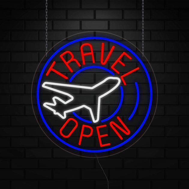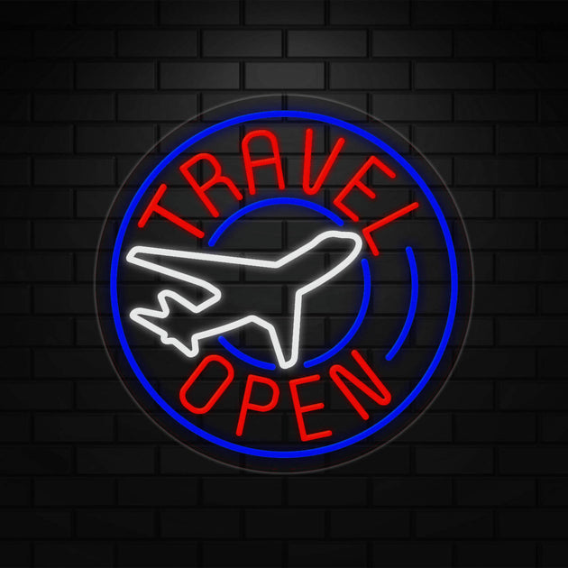 Travel Open Sign for Business Displays | LED Flex Neon | 26"W x 26"H x 1"D