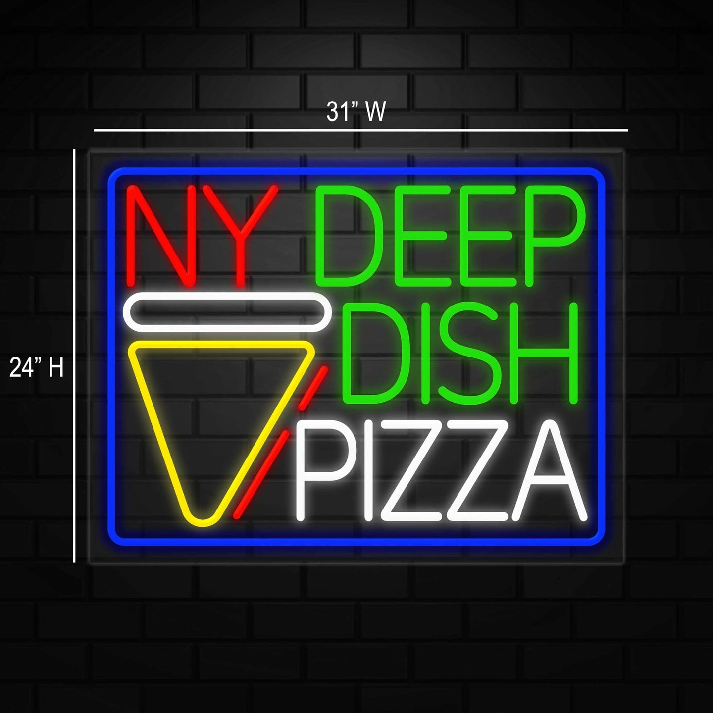 NY Deep Dish Pizza Sign for Retail Displays | LED Flex Neon | 31"W x 24"H x 1"D
