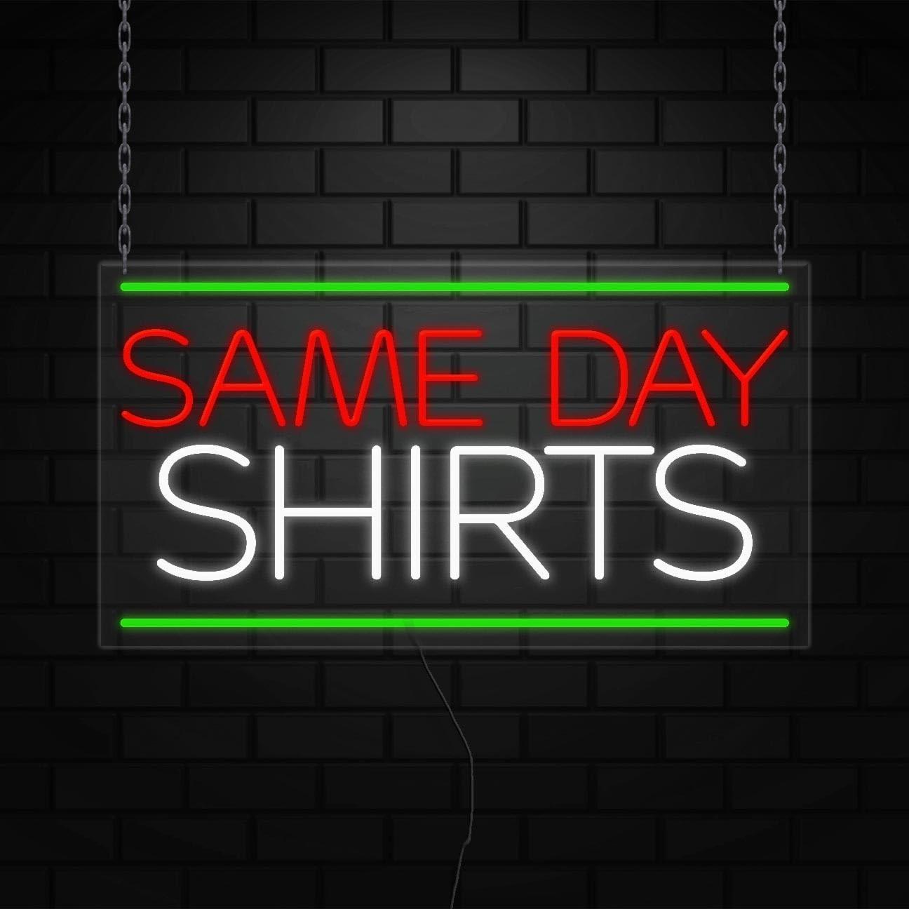 Same Day Shirts Neon Sign for Retail Displays |LED Flex Neon | 37"W x 20"H x 1"D