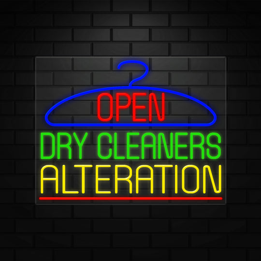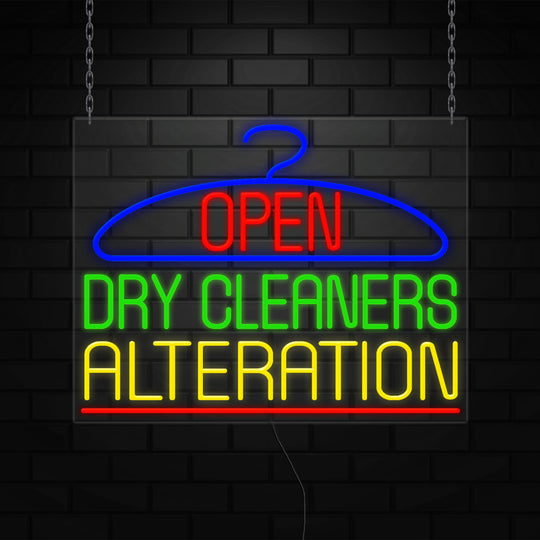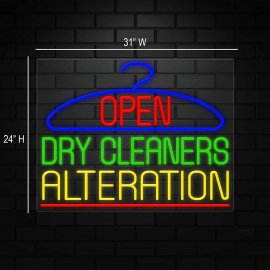 Dry Cleaners Open Alteration Sign for Business |LED Flex Neon |31"W x 24"H x 1"D