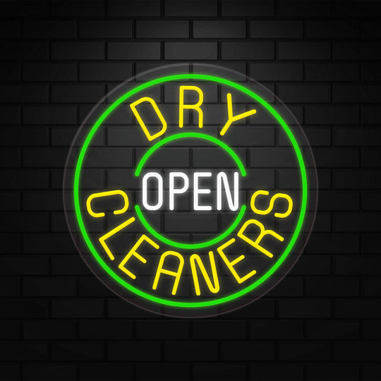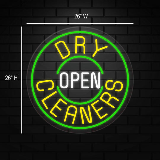 Dry Cleaners Open Sign for Business Displays | LED Flex Neon | 26"W x 26"H x 1"D
