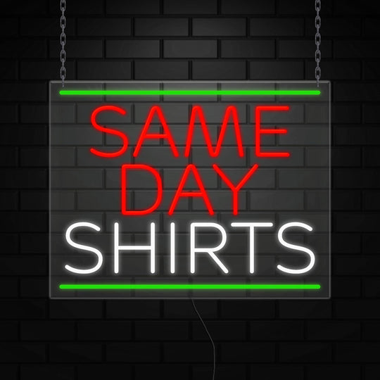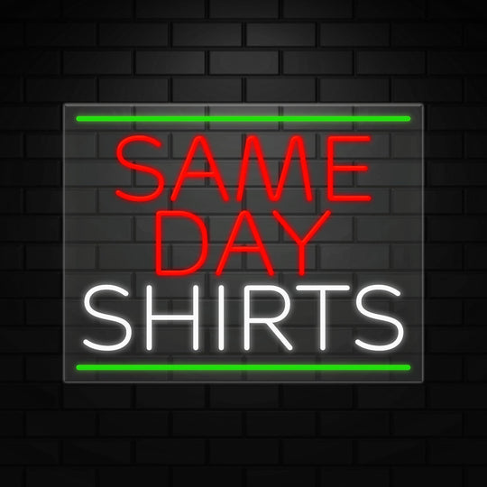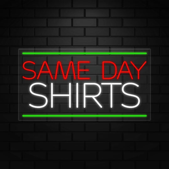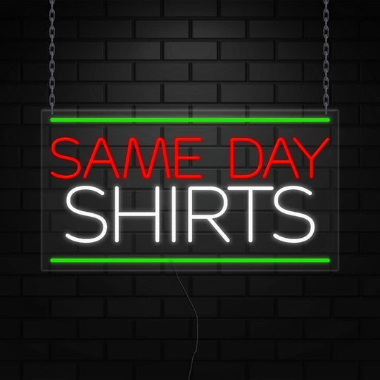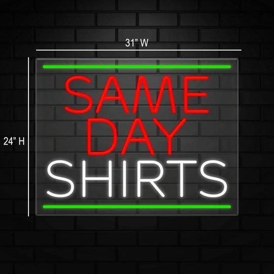 Same Day Shirts Neon Sign for Retail Displays | LED Flex Neon| 31"W x 24"H x 1"D