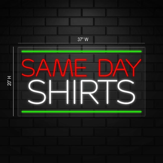 Same Day Shirts Neon Sign for Retail Displays |LED Flex Neon | 37"W x 20"H x 1"D