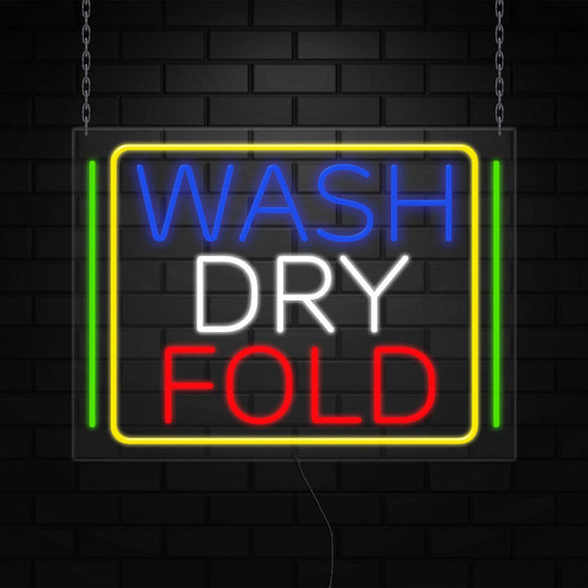 Wash Dry Fold Sign for Business Displays | LED Flex Neon | 24"W x 18"H x 1"D