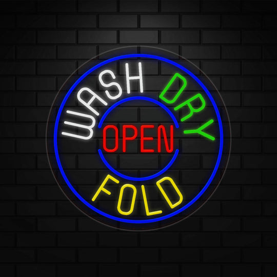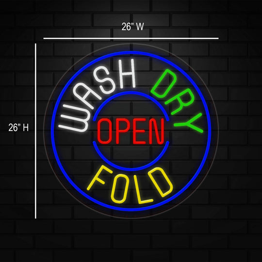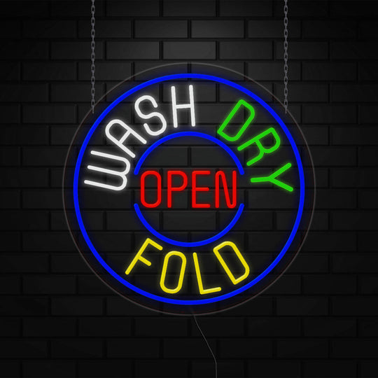Wash Dry Fold Open Sign for Business Displays |LED Flex Neon | 26"W x 26"H x 1"D