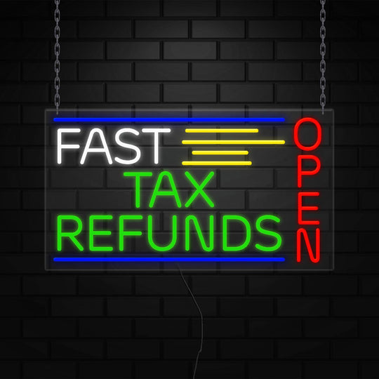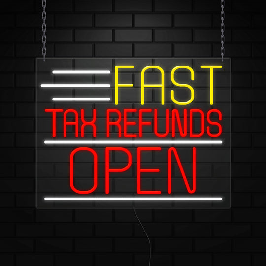 Fast Tax Refunds Sign for Retail Displays | LED Flex Neon | 31"W x 24"H x 1"D