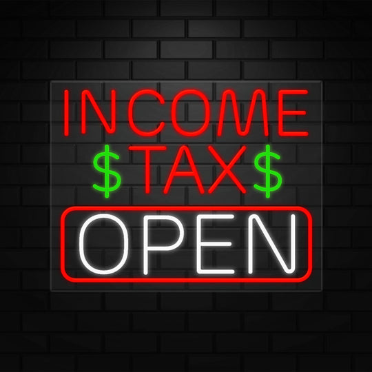 Income Tax Neon Sign for Retail Displays | LED Flex Neon | 31"W x 24"H x 1"D