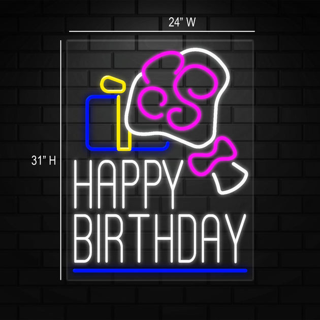 Happy Birthday Sign for Business | LED Flex Neon | 24"W x 31"H x 1"D