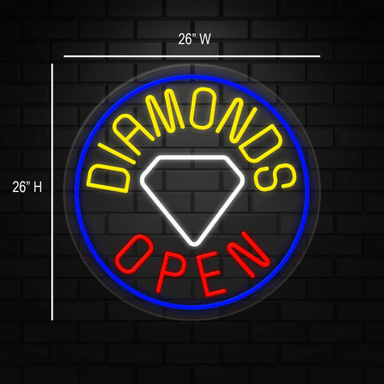 Diamonds Open Sign for Business Displays | LED Flex Neon | 26"W x 26"H x 1"D