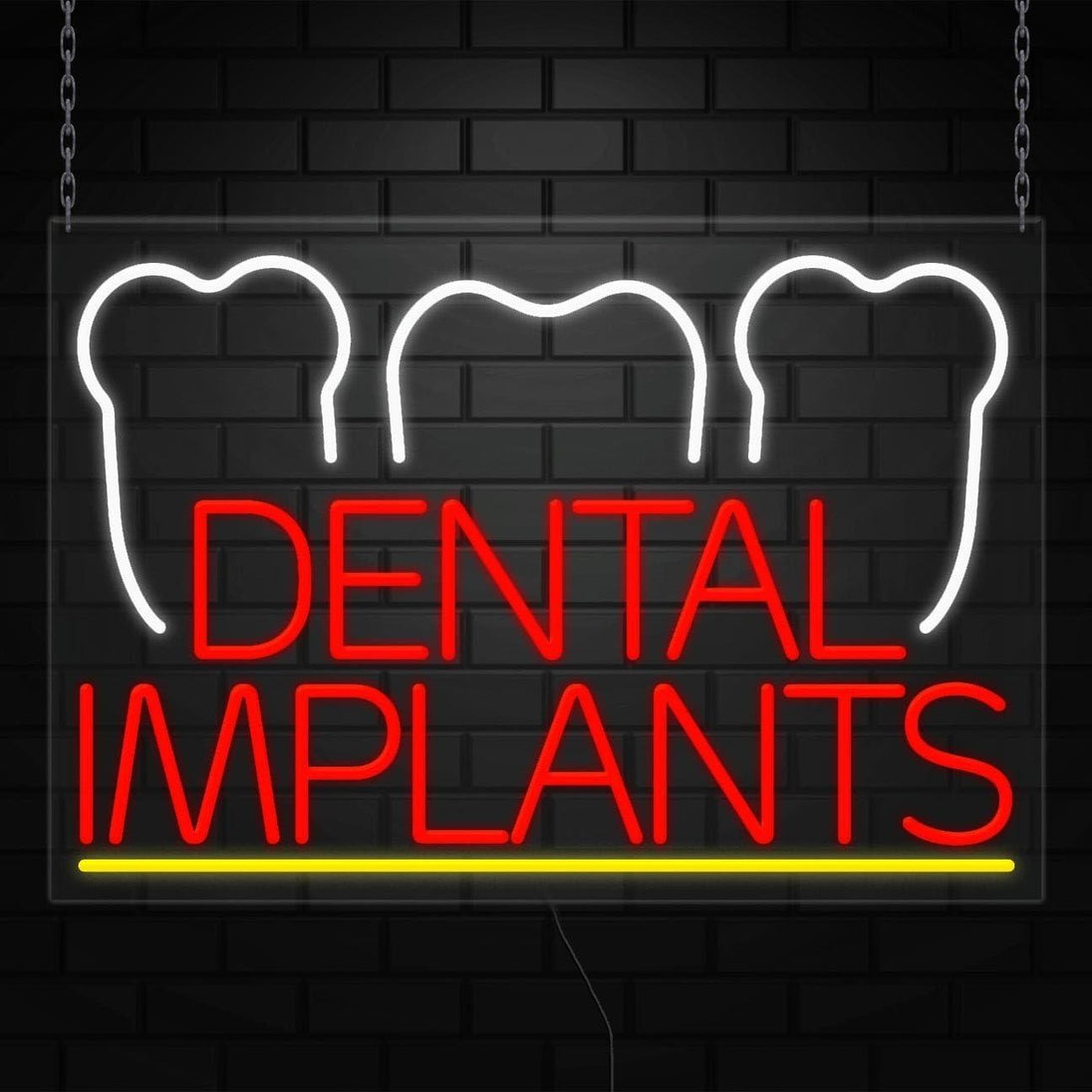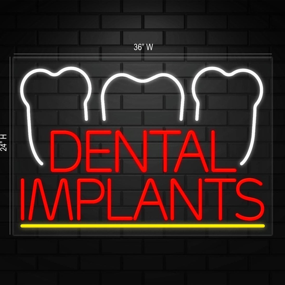 Dental Implants Neon Sign for Retail Displays |LED Flex Neon | 36"W x 24"H x 1"D