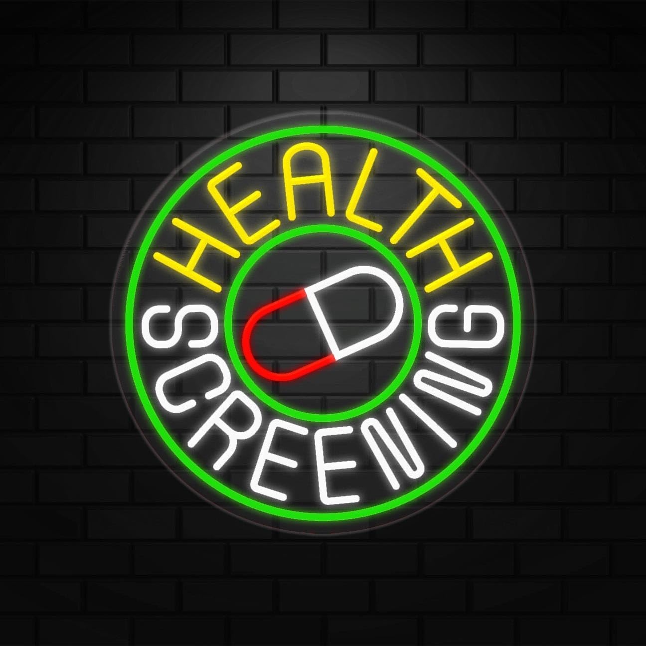 Health Screening Sign for Retail Displays | LED Flex Neon | 26"W x 26"H x 1"D