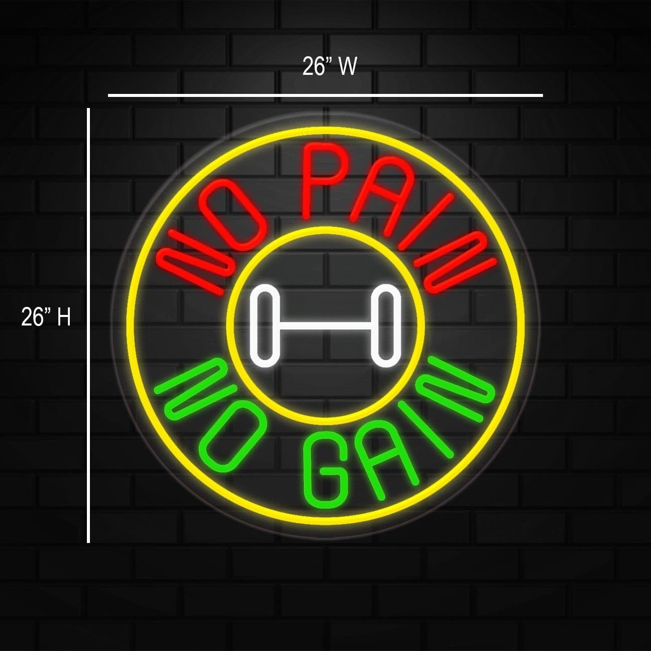 No Pain No Gain Neon Sign for Retail Displays |LED Flex Neon | 26"W x 26"H x 1"D