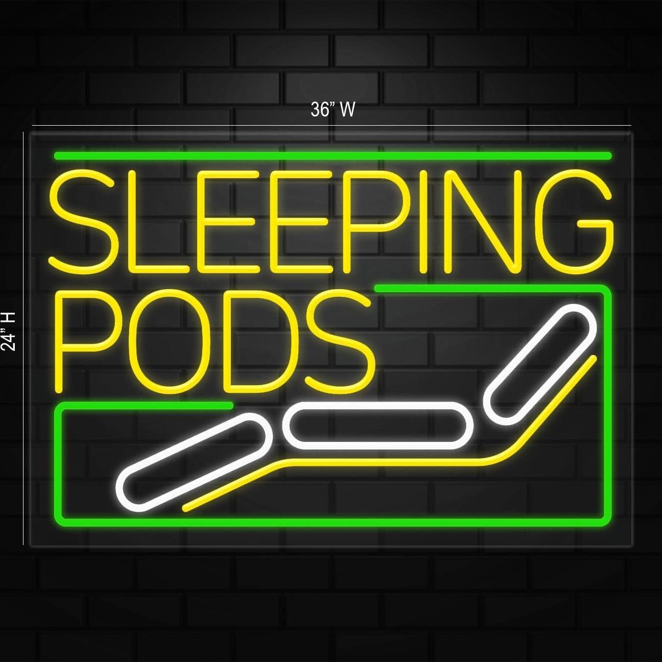 Sleeping Pods Neon Sign for Retail Displays | LED Flex Neon | 36"W x 24"H x 1"D