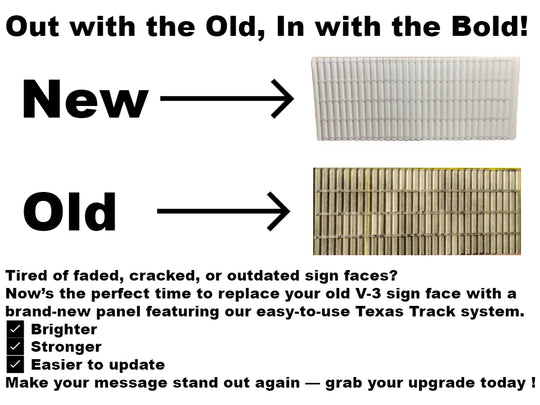 Readerboard Marquee Fiberglass V3 Face Panel Only With Texas Track | 4 Lines | 40"h x 96"w | White | For Use with 8" on 8 7/8" Flexible (NON RIGID) Letters