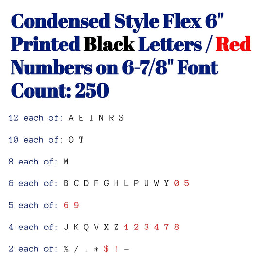 Flexible Outdoor Sign Letters Condensed Style | 6" on 6-7/8" Black/Red | 250 ct