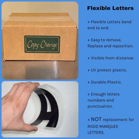 Block Style Flex change letters are the second most popular of all flexible plastic letters on the market. 6? Printed Black Letters/Red Numbers on 6 7/8" Clear Background plastic Font Count: 299. These letters should not...Regular price $110.00 -