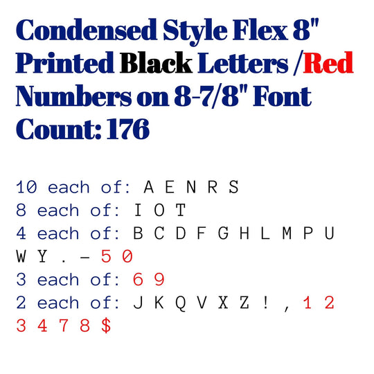 Flexible Outdoor Sign Letters Condensed Style | 8" on 8-7/8"Black/Red | 176 ct