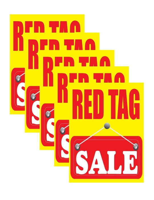 Red Tag Sale | Retail Window Display Sign | 18"W x 24"H | 5 Pack