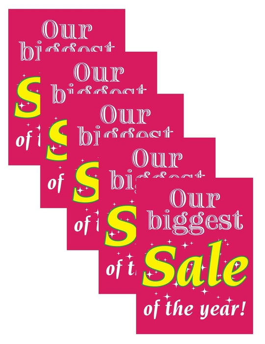 Our Biggest Sale of The Year | Retail Window Display Sign | 18"W x 24"H | 5 Pack